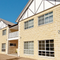 With a distinctive rock face finish and light sandy colours the GB Sandstone range is the ideal feature walling product for homes of distinction. Selected colours in the GB Sandstone range feature unique veins of colour through the block which catch the eye.