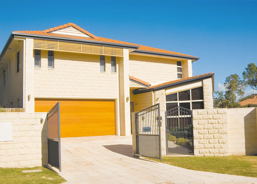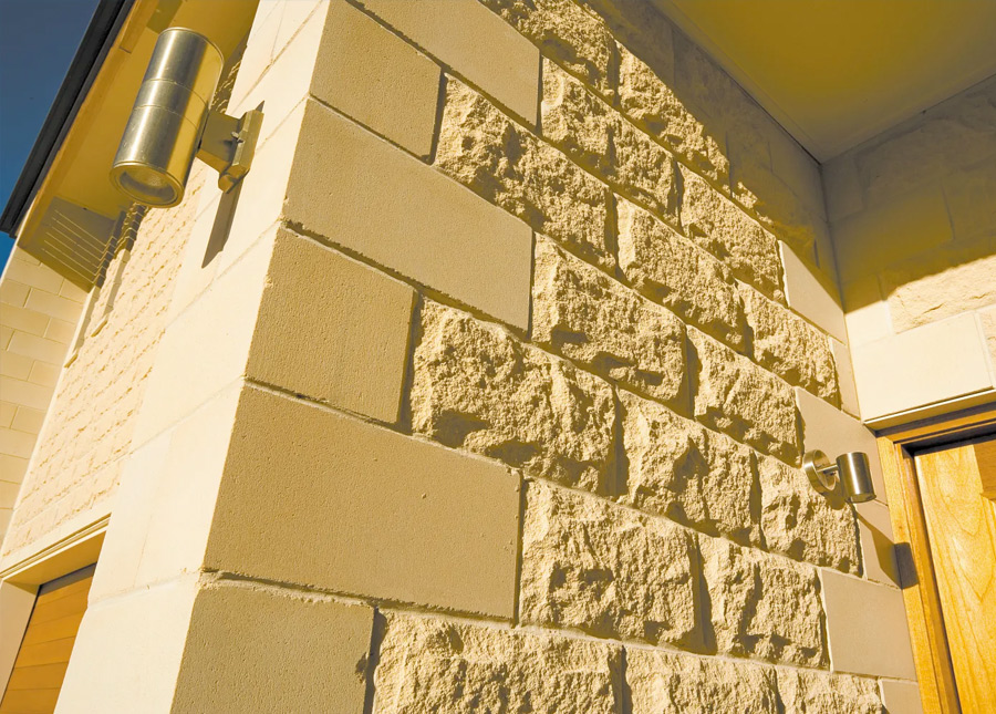 With a distinctive rock face finish and light sandy colours the GB Sandstone range is the ideal feature walling product for homes of distinction. Selected colours in the GB Sandstone range feature unique veins of colour through the block which catch the eye.